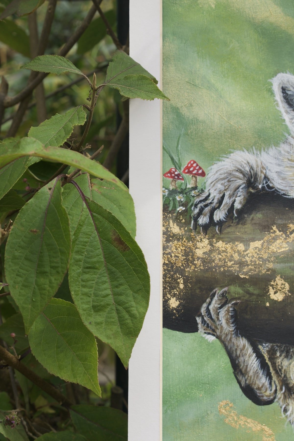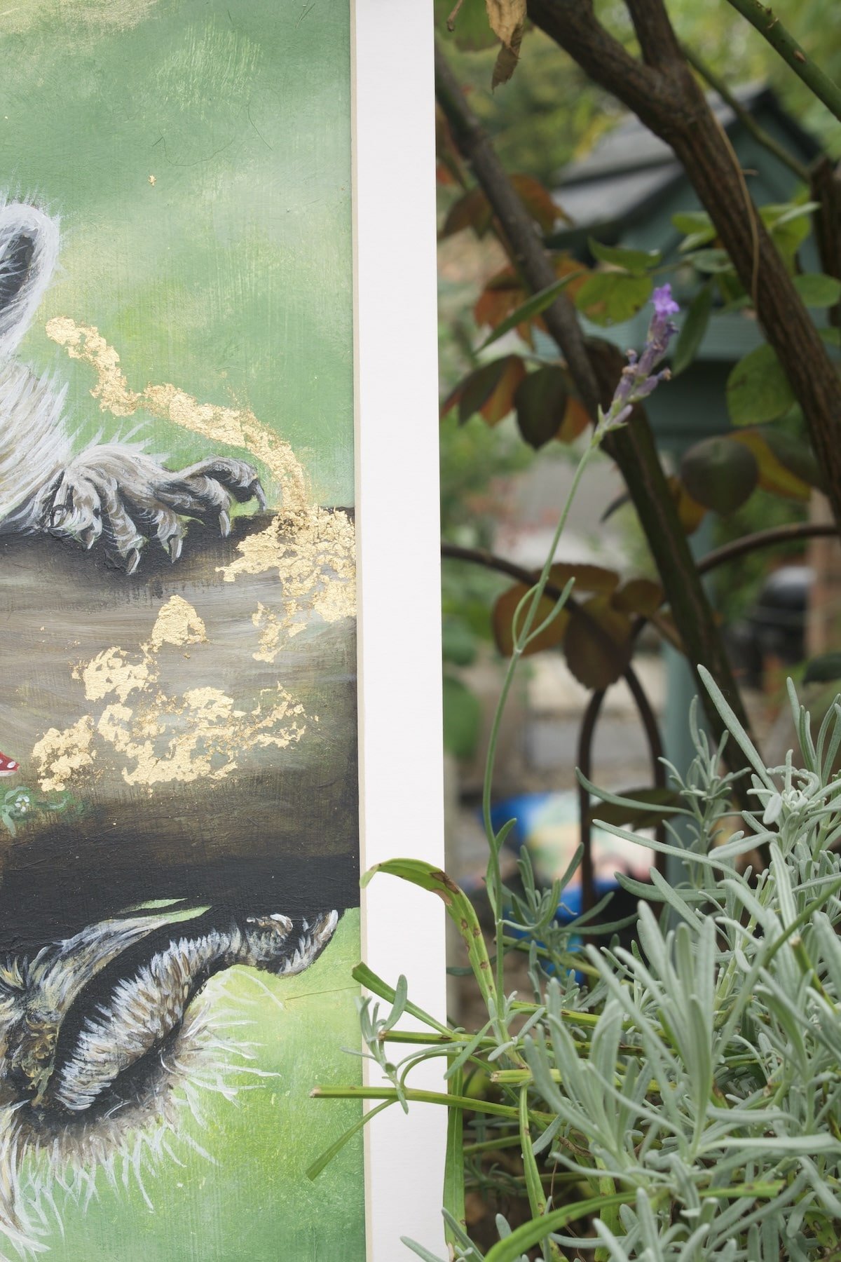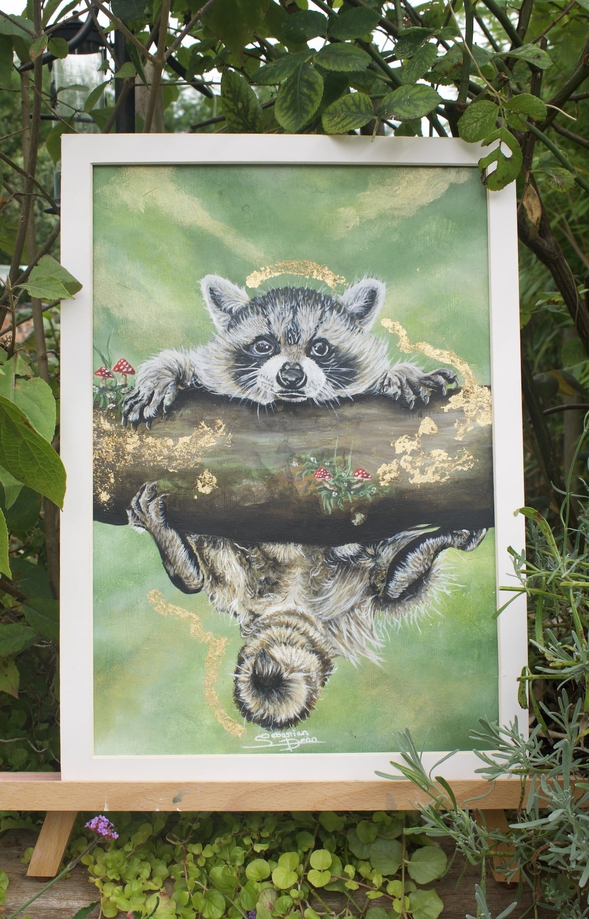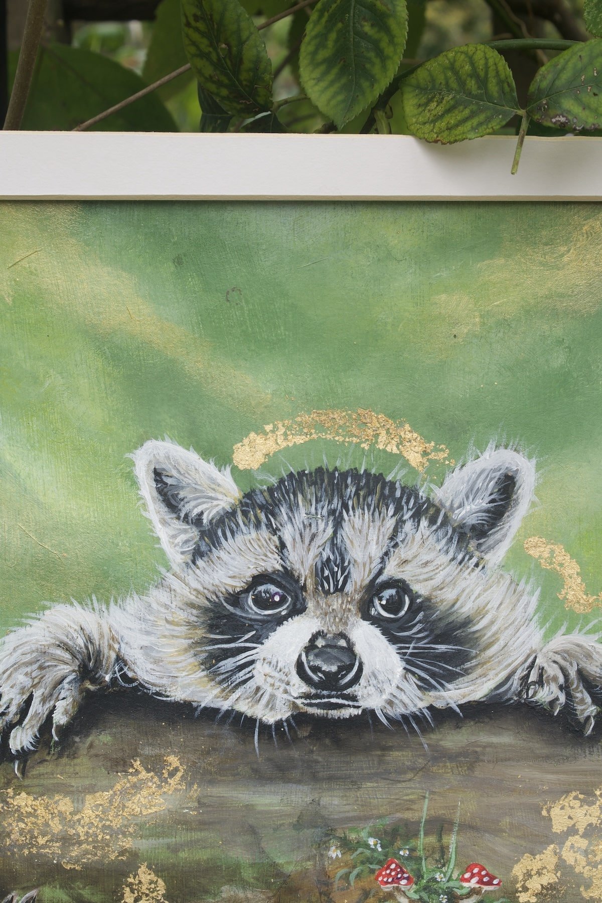 Mischief and wonder shine in the raccoon’s wide eyes as it hangs playfully from its forest perch.